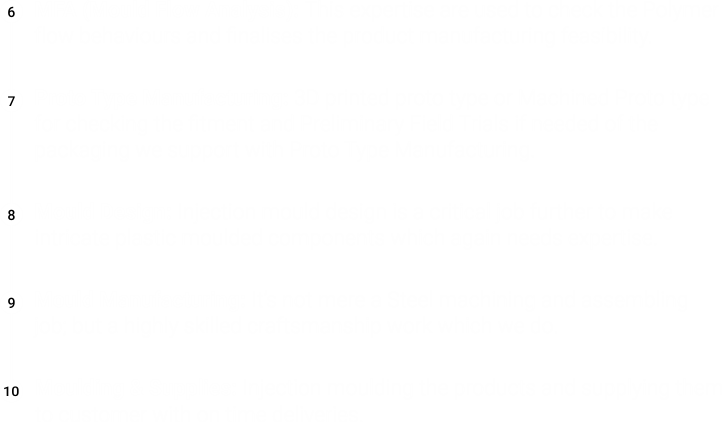 Mould Design: Injection mould design is a critical job further to make intricate plastic moulded components which again needs expertise.