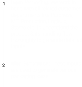 Input Gathering: We work in hand with all related customer departments like Purchase, ME, Production, Logistic, Stores etc. to understand the product & its handling flow thoroughly to generate detailed inputs.
